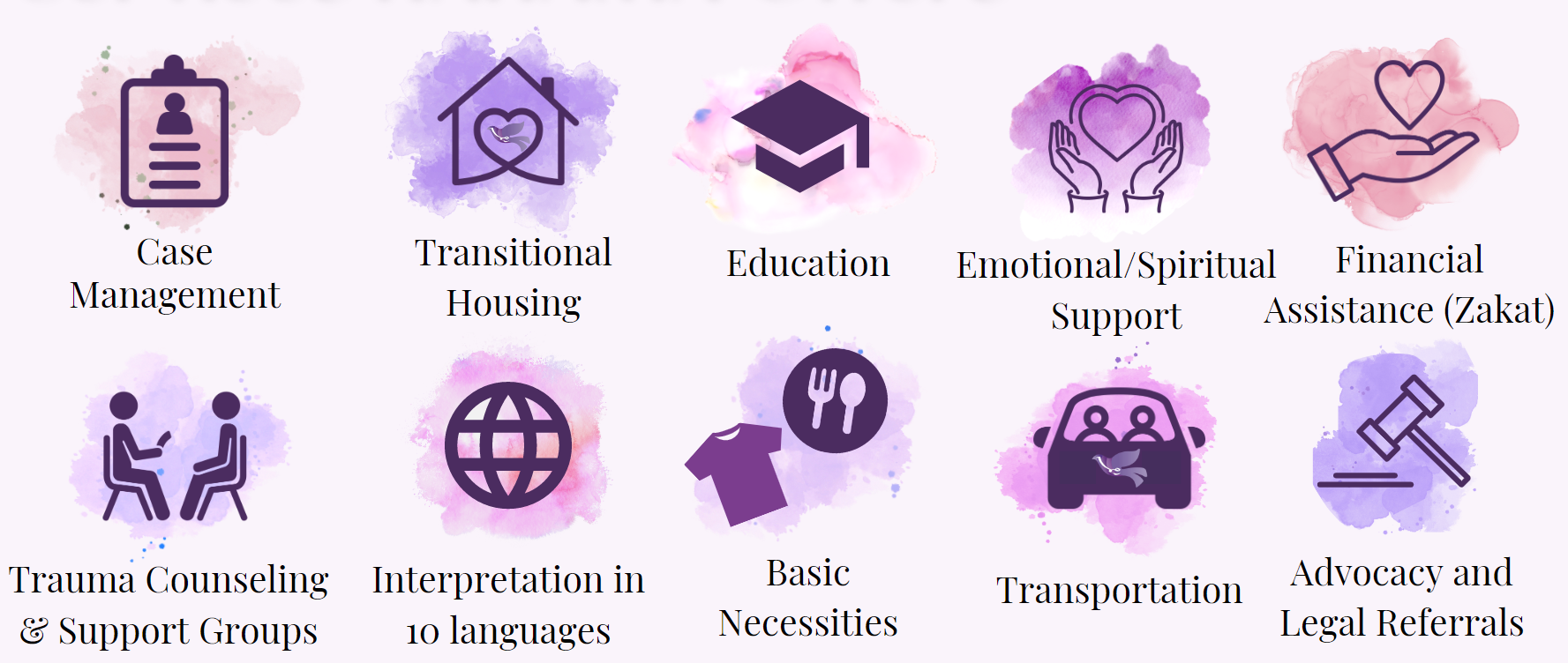 - We strive to provide education for all clients as a long-term step to self-sufficiency.